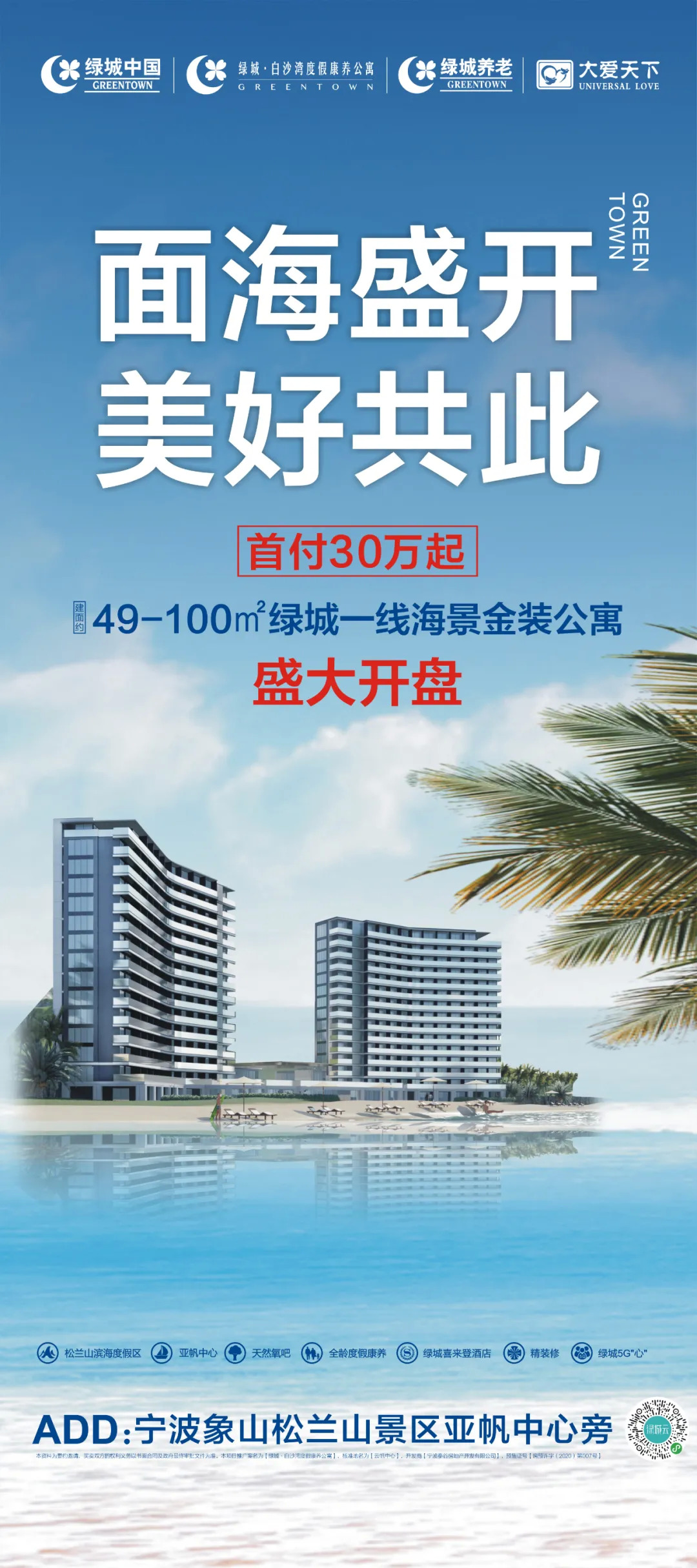 一线海景金装公寓,空调地暖热水器,品牌橱柜卫浴,亚帆中心旁,五星喜来登配套,绿城养老服务,首付30万起,详询0574-89500000。