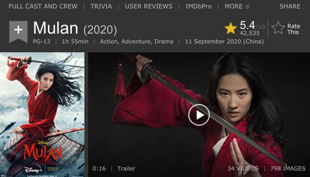 并且迪士尼也早早就宣布《花木兰》的付费观看只有三个月的窗口期,三个月之后任何Disney+用户都可以直接在平台上免费看到这部电影。一旦首周的冲动消费意愿消磨殆尽,长线而言,过于糟糕的口碑以及综合复杂的外部舆论因素,以及不断出现的新内容,都会让这部电影更快被用户遗忘。