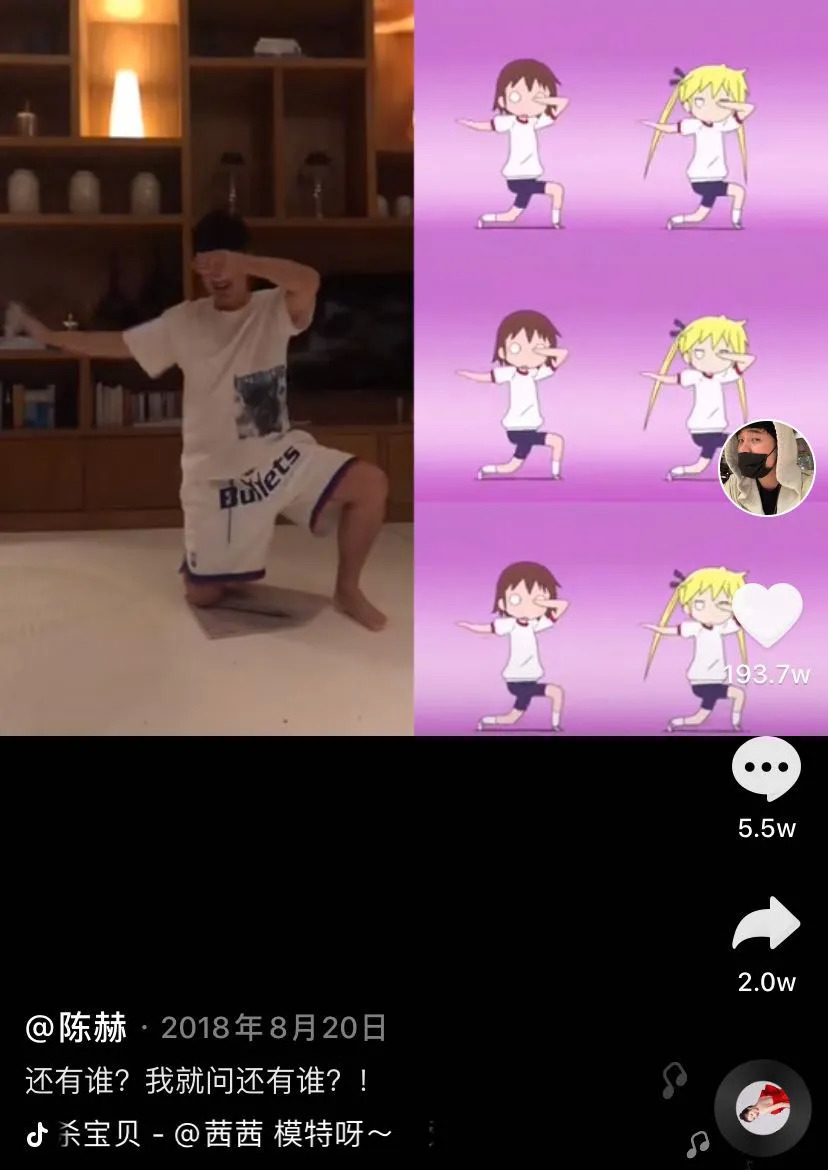 彼时,平台为构建更具黏性的星粉生态,推出过系列互动玩法。陈赫反应速度极快,不放过任何交流机会,以变装、聊天等实现跟网友的跨屏同框,几度空降站内热榜。此后,他又积极参与口令挑战、网红合拍等活动,频繁出现在各路博主的镜头下,如愿培养起自己的新粉丝群。