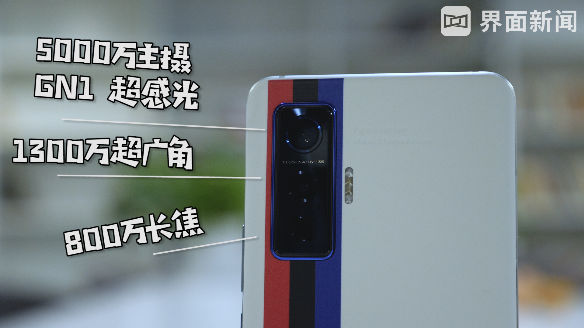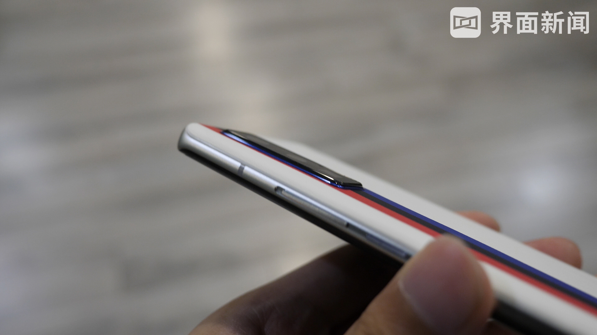这次的传奇版是和宝马旗下的M Motorsport合作,M系列,简单理解,就是BMW旗下主打高性能赛车和运动的车型,所以在设计上,传奇版后盖的红黑蓝彩带就取自Motorsport的logo,给白色素皮的底子增加了个性。后盖之外,iQOO 5 Pro传奇版的解锁动画也是Motorsport这种速度感的品牌特色。