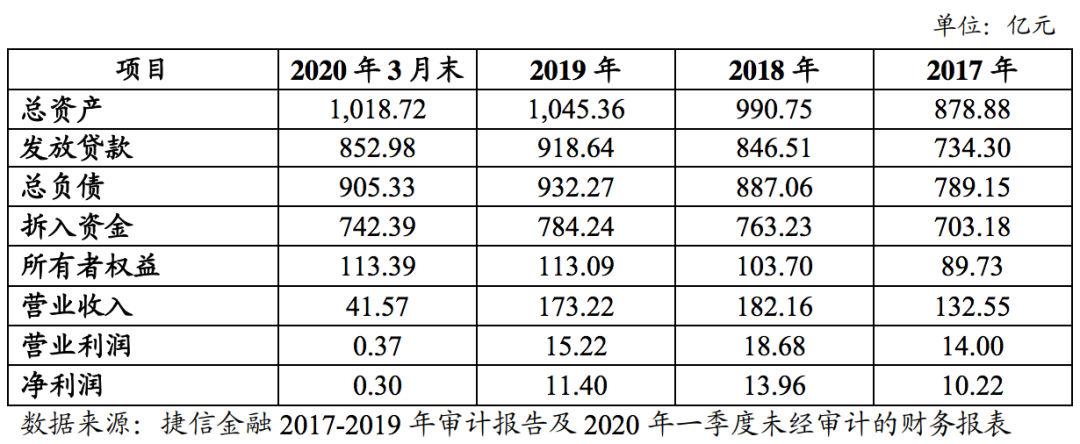 截至2020年3月底, 捷信消费金融的总资产为 1018.72 亿元,所有者权益为 113.39亿元,资本充足率为11.29%,不良贷款率为3.79%。其中,不良贷款率在2019年末为3.6%,上涨0.19个百分点,环比增加5%。