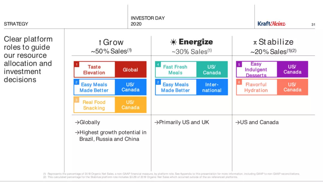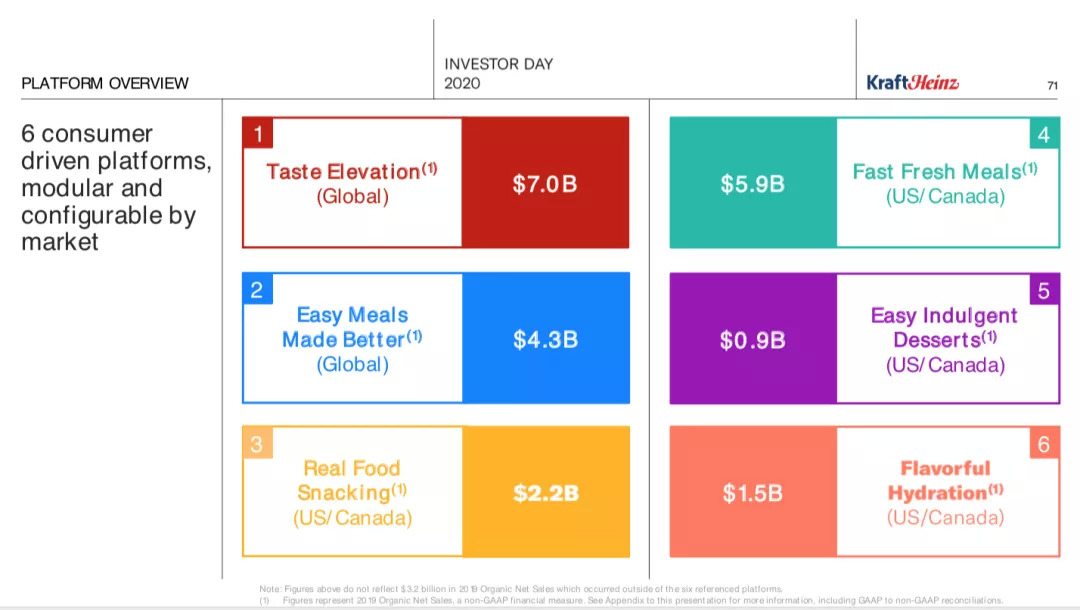 小食代留意到,在昨夜今晨举行的该公司年度投资者大会上,卡夫亨氏全球CEO傅玫凯(Miguel Patricio)等该公司总部高管披露了全新发展计划,包括重新划分“6大平台”来管理旗下所有品牌和产品等。