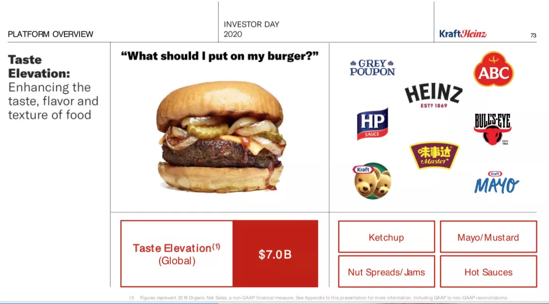 它们的规模大小也各不相同。据Barton透露,“提升味道”(即包括调味品和酱料业务)是最大的平台,销售额近70亿美元(约合人民币474亿元)。这一平台下的产品包括番茄酱品牌亨氏(Heinz),以及在中国销售的酱油味事达等。