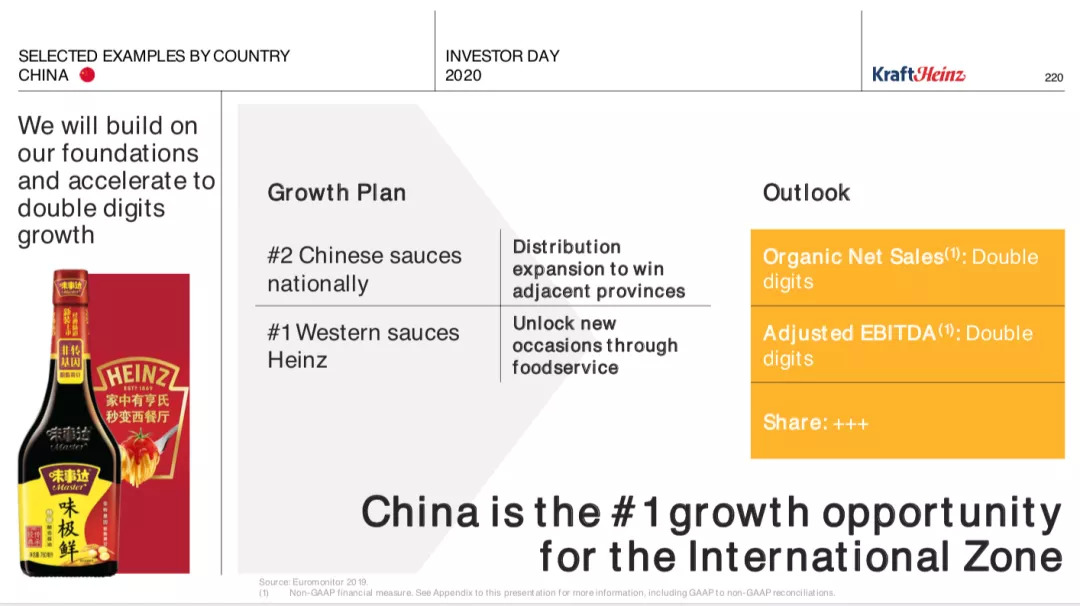 值得注意的是,中国市场还被最新形容为卡夫亨氏国际业务实现增长的“最大机遇”,味事达酱油、亨氏番茄酱等调味品业务被重点提及。
