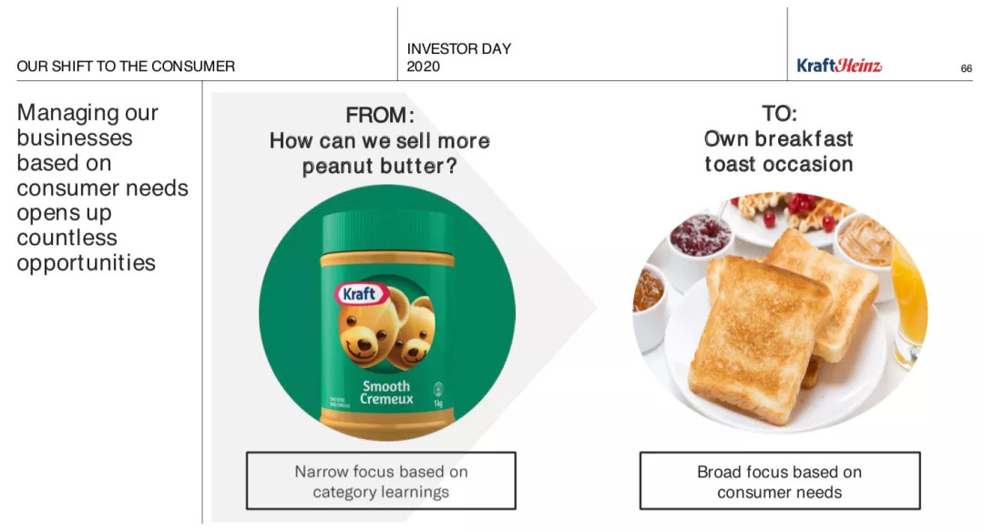 要回答这些问题,卡夫亨氏需要从根本上重新考虑应该如何开展业务。“这是一个简单但有意义的转变。我们根据消费者的眼光和视角重新调整了业务方向,以为他们创造更好的饮食体验,并考虑到他们的用餐场合和更广泛的需求。”Barton说。