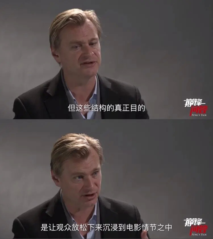 诺兰电影以悬疑、科幻、动作的复合类型为主,辅以虚实、反套路、平行剪辑、非线性叙事等符号,他对视听语言与烧脑叙事的驾驭能力,在好莱坞无出其右。影评人梅雪风讲,诺兰是个把“时间”玩出花来的导演,通过对节奏、心理的调控,观众始终处于被悬念挑逗和压迫的位置,毫无喘息机会[8]。