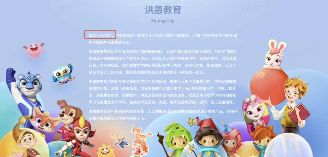 提到洪恩教育,很多80、90后都非常熟悉。据官网资料,洪恩教育成立于1996年,从最初的电脑教育、成人英语,到学前儿童英语,再到多学科布局,一直以来,洪恩教育始终瞄准在学前儿童市场。2016年,洪恩教育推出互动式自主学习APP包括洪恩识字、洪恩儿童英语、洪恩数学,布局线上,这也成为洪恩如今认定的公司成立时点。