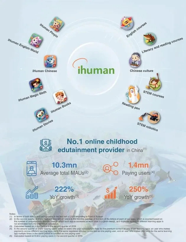 招股说明书显示,洪恩将自身定位在学前儿童在线寓教市场提供者,区别于已经上市的教育公司比如专注K12的好未来等,进行差异化竞争。