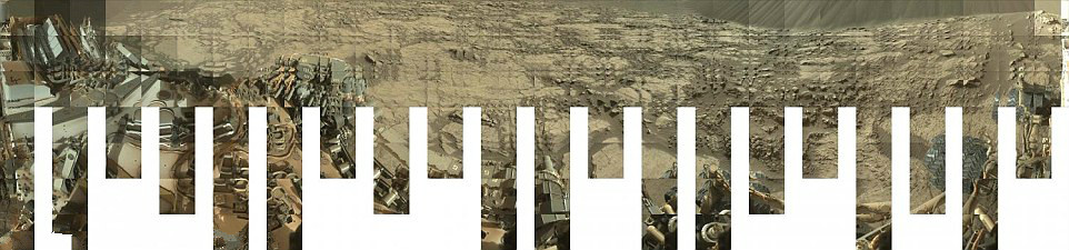 “好奇号”此次一共传回了138张照片,国际虚拟现实摄影协会(IVRPA)成员Andrew Bodrov将这138张照片拼接到一起,创造了一副像素高达30万的巨幅图片,其中包括好奇号的甲板以及末端安装有MAHLI相机的机械臂。