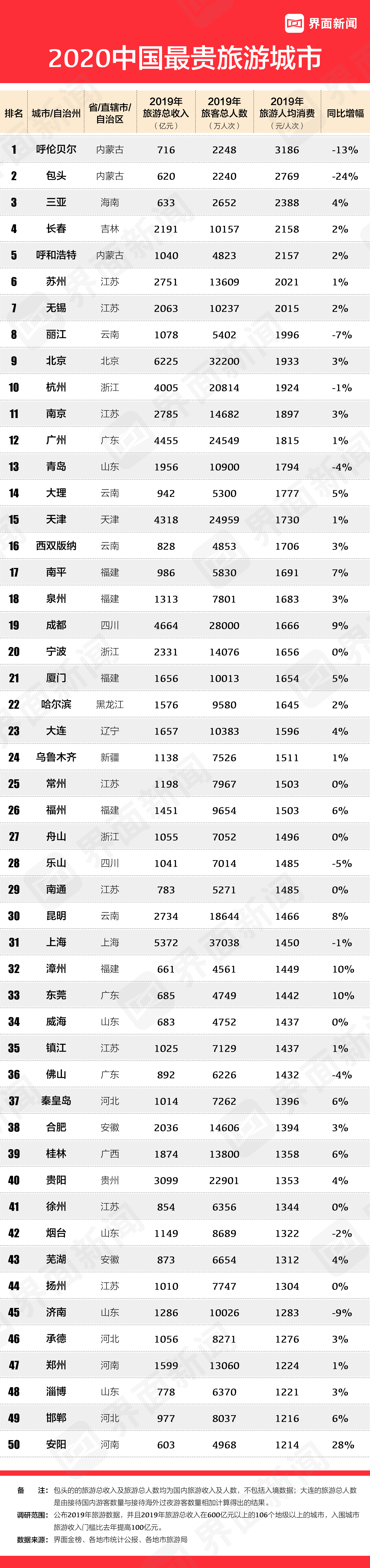 - 2020界面新闻最贵旅游城市
