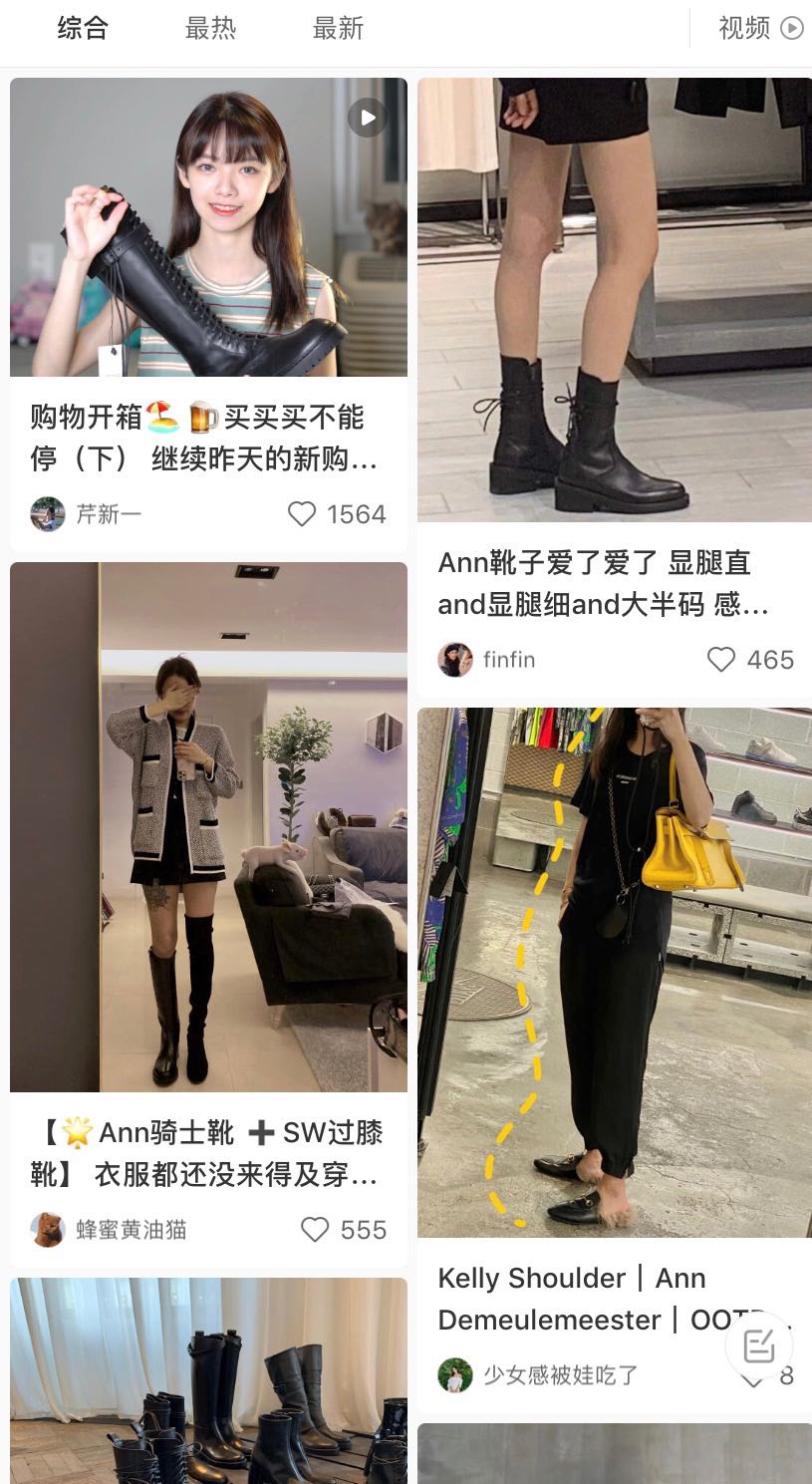 界面时尚查阅小红书发现,几乎所有网友提到Ann Demeulemeester时都是在讨论品牌的靴子,马丁靴、骑士靴、绑带靴等多个Ann Demeulemeester的靴子单品都有很高的讨论度。