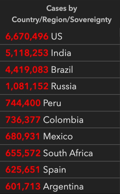 0800【约翰斯·霍普金斯大学:截至北京时间9月18日上午8点,美国累计确诊新冠肺炎病例6670496例,死亡197589例】