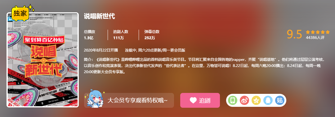 而到了2018年,B站又开始投入重金做综艺,与湖北卫视联合出品的《非正式会谈》第五季、第六季,豆瓣评分均超过了9.0。今年更是请来了1-4季《极限挑战》总导演严敏,制作了豆瓣评分高达8.7分的《说唱新世代》。