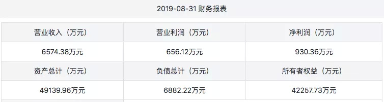 截至2019年8月31日,玄机科技2019年前8个月营收为6574.38万,营业利润656.12万,净利润930.36万,总资产为4.914亿元。