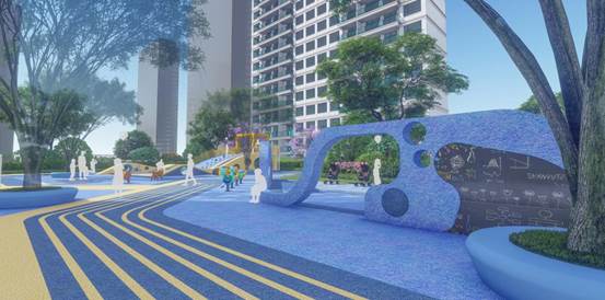 景观环境不应只停留在观赏的层面,更要成为引导孩子了解、认知、探索世界的窗口。江悦润府,通过对园林空间的灵活布置,围合出约600㎡儿童星乐园,认知区、涂鸦墙、咚咚墙、赛车跑道、摇摇乐、童车停放区等活动设施,满足儿童探索、发现、求知的需求,可供0-12岁儿童肆意撒欢,尽情拥抱童真的快乐与成长的美好时光。