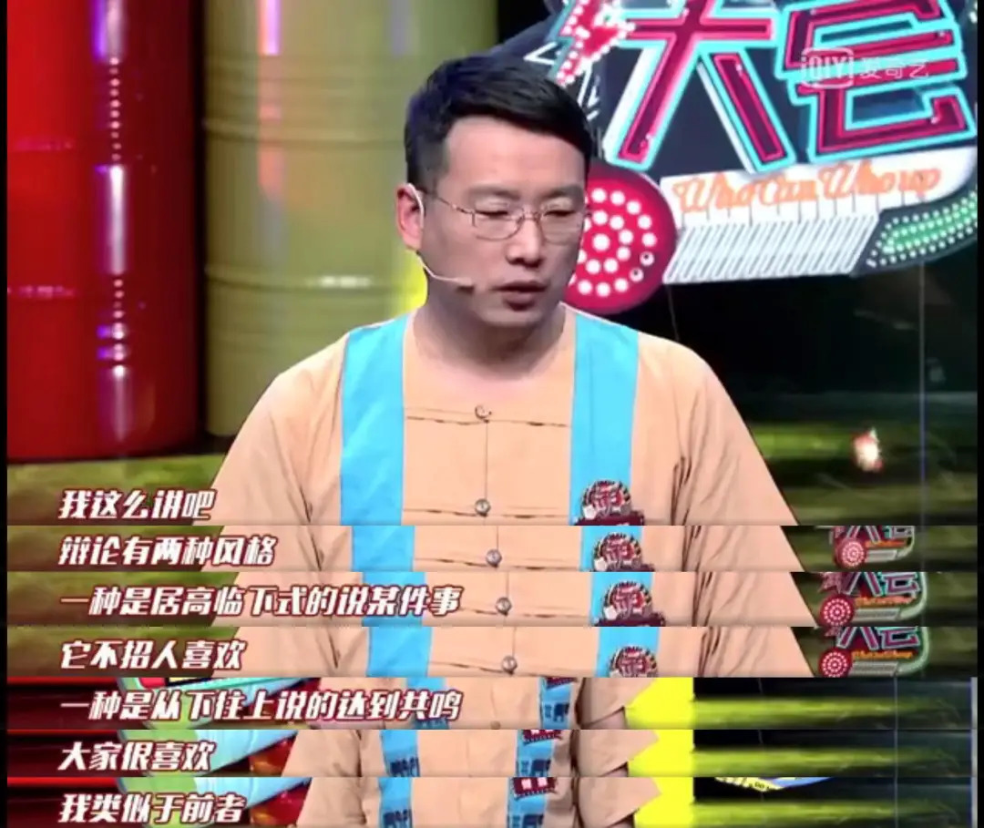 从学历和经历上,看起来不是很普通,他手握教授、副院长、执行院长、国际关系研究员等多个名头,参加过《奇葩说》《我是演说家》等数个节目,可以说是有成绩和阅历的。然而他的这个视频,无论是从辩论的角度,还是吐槽的角度,都普通得令人只能摇头。