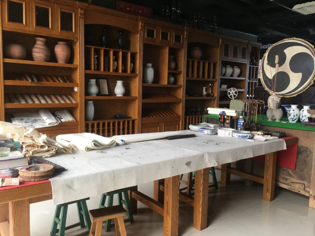付建新办公楼里的陶艺室,放置了满满的邢白瓷
