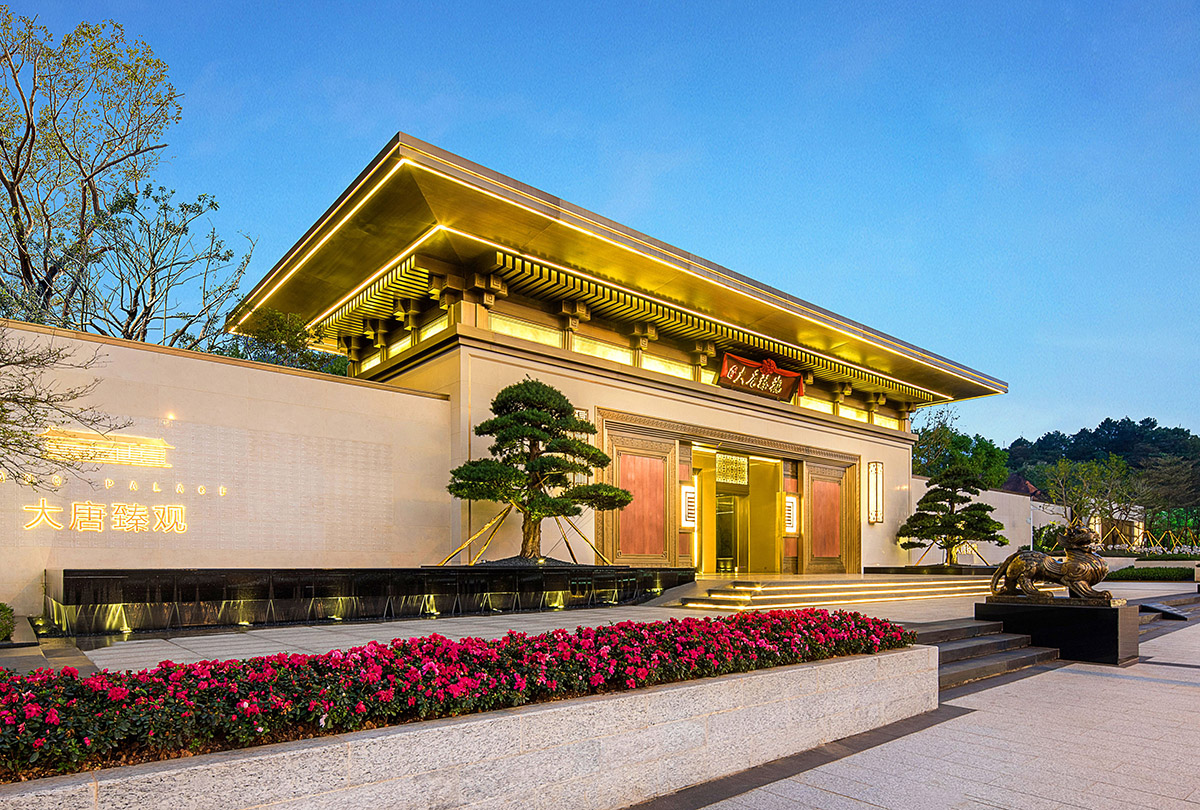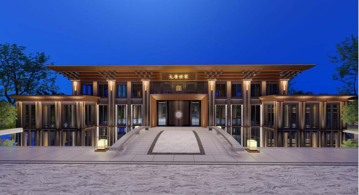 营造--将古法今技、东魂西艺理念融注到建筑中,汲取传统建筑特有的飞檐斗拱结构,融入榫卯构件工法。同时采用以中华礼仪为基础形成的独特“唐”字纹饰系统,传承唐风建筑之华彩,再现国韵唐风。