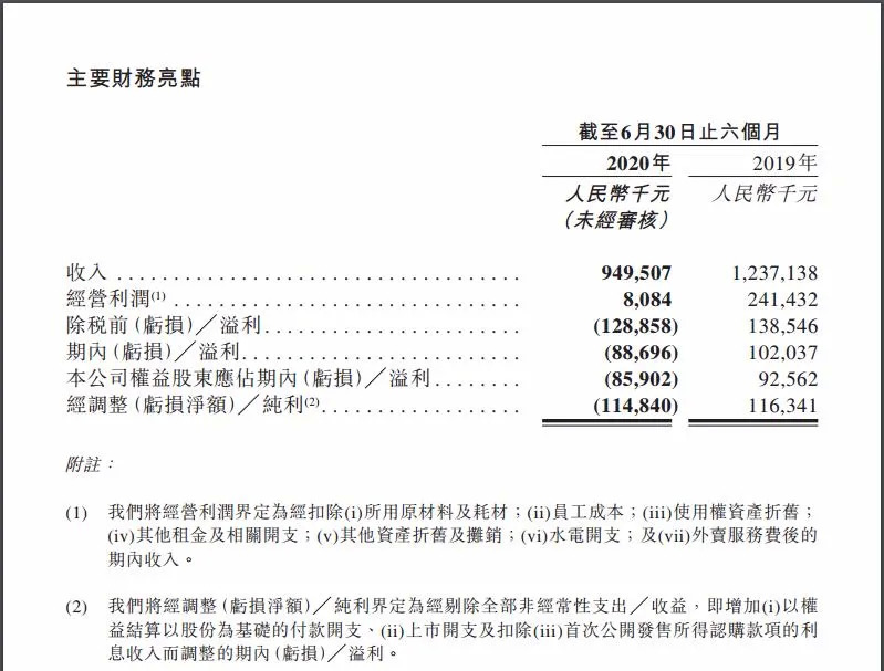 8月24日,九毛九(九毛九国际控股有限公司)发布其2020年中期业绩报告。中报显示,报告期内九毛九实现营收约9.495亿元,同比减少约23.25%;公司权益股东应占期内亏损为8590万元,经调整后纯亏损达到1.15亿元。