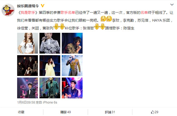 《我是歌手》第四季首发名单曝光 赛制残酷第一场就有人淘汰