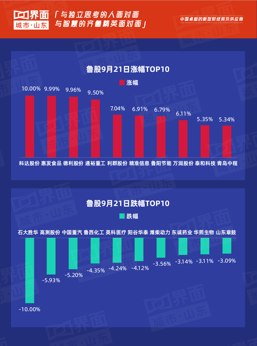 9月21日,山东80股上涨,130股下跌。