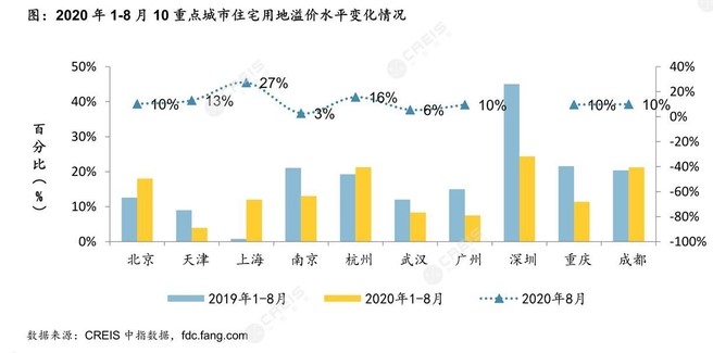 天津当然意识到严重性,2020年前9个月,杠杆地产看数据发现,宅地供应、成交面积大幅下滑,当然溢价水平也很低,在10个重点城市中最低。