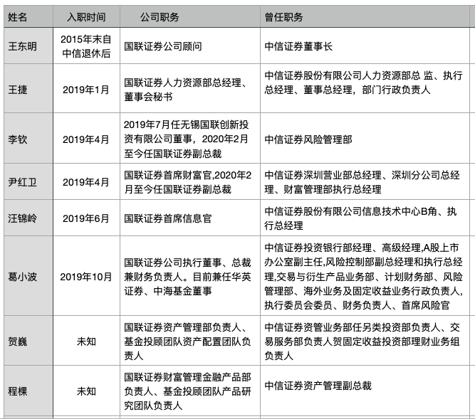 在这之后,国联证券迎来一波中信核心骨干的大迁徙。