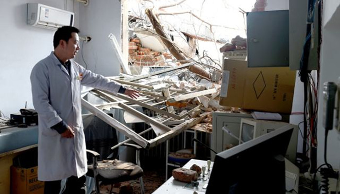 记者在现场看到,满地碎砖,一片狼藉。在一些诊室,成套的大型诊疗设备被掩埋,部分仪器已经损毁。