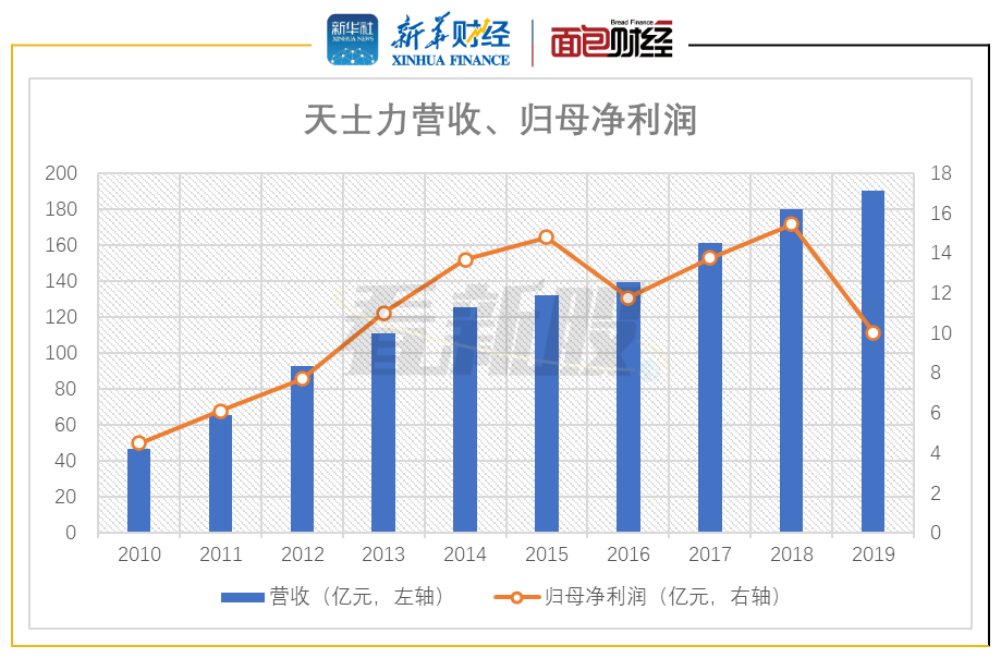 图3:2010年至2019年天士力营收、归母净利润