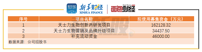 公司此次上市的募资资金将用于创新药研发项目、营销及品牌升级项目、补充流动资金。