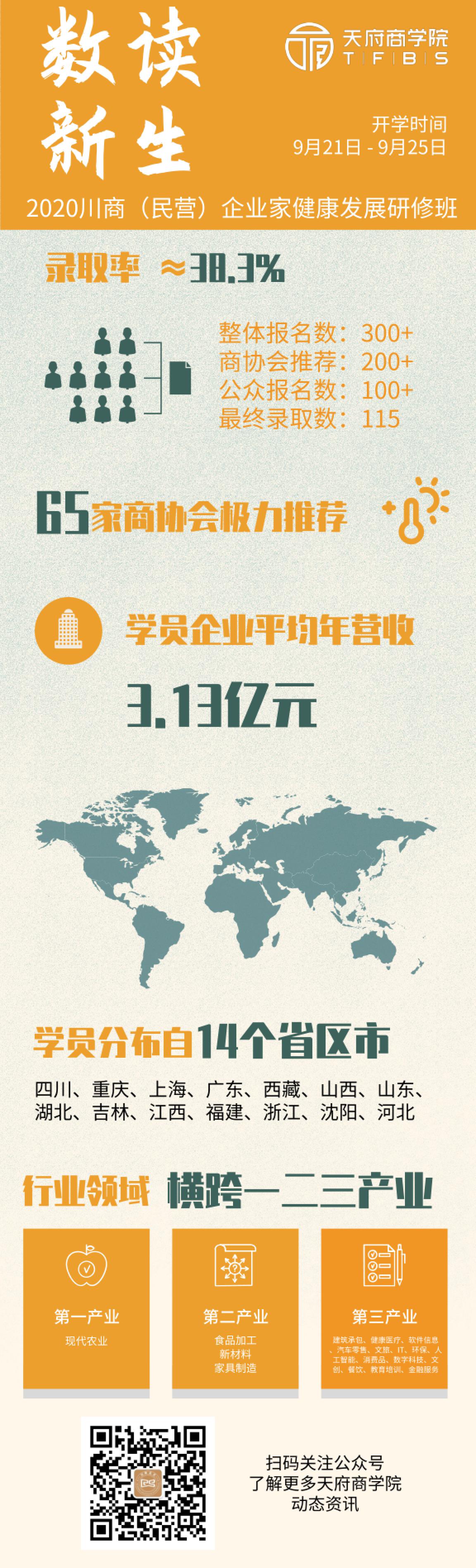 受疫情影响,本次研修班是天府商学院在2020年组织举行的“第一堂课”,受到65家商会的极力推荐、300余位企业家学员的踊跃报名,最终,115名学员获得入学资格。