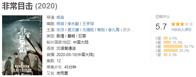 《非常目击》作为爱奇艺“迷雾剧场”的第三部剧,在开播之前被寄予厚望,然而开播之后口碑急转直下。虽然该剧在制作和风格上依然匠心独具,但网友对于这样的创作似乎并不买账。