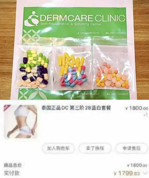 这些还不是最离谱的,上文提到的泰国DC减肥药,简直是一本万利。DC减肥药其实是一组药的名称,不同代购会贩卖不同版本和组合的DC药,而在这些药丸中,其实只有一种是用于减肥的。