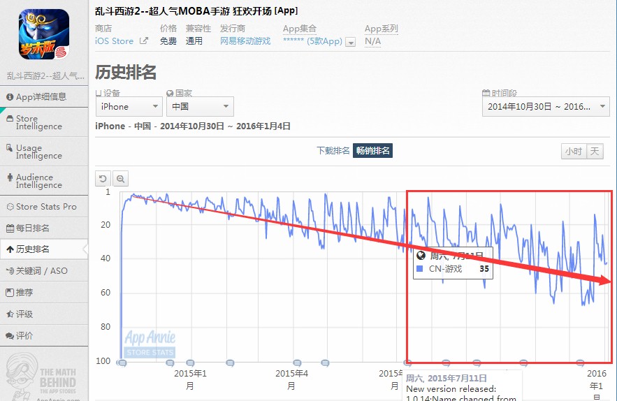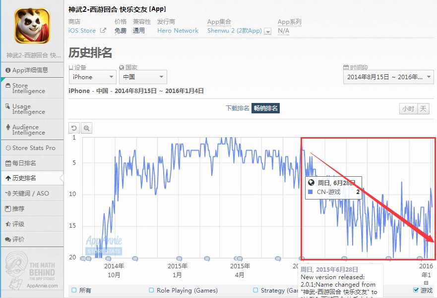 《乱斗西游2》与《神武2》都是在原手游经历一次大的版本更新,从而改名再大力宣传的手游。《乱斗西游2》是在2015年7月11日《乱斗西游》进行一次重大的版本更新而成,新添加了12个英雄,但这次更新玩法、画面基本没有什么大的变化。续作公布之时,进行了一次大规模游戏营销,重新导入用户。7月29日达到最好成绩第4名,与前作仅相差两名。但随后的增长乏力,整体表现与前作稍逊一筹。
