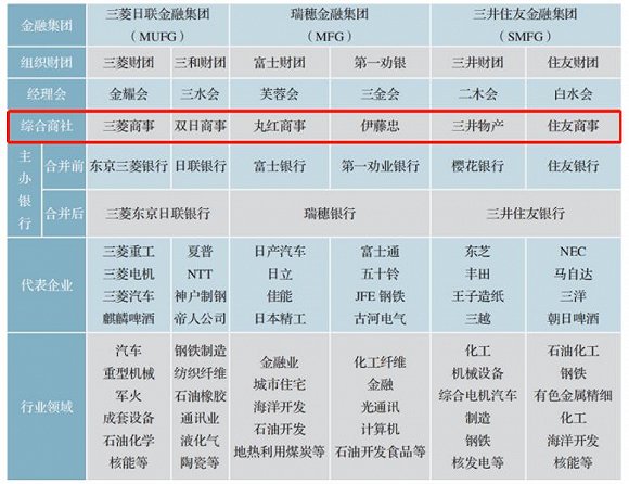 本次被投资的5家贸易公司,分属日本的5家财团,如果加上三和财团就是著名的日本六大综合商社,看看下面的成员企业就知道这是六家什么样的庞然大物。