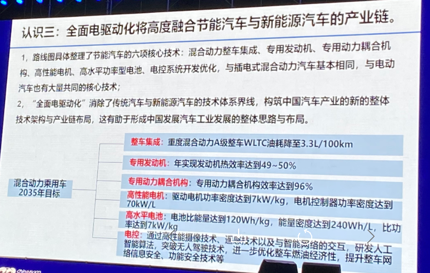 "燃油车不会全面退出,取而代之的将是混合动力汽车。用'全面电驱化'替代'禁燃时间表',更符合中国国情。"国家新能源汽车创新工程项目专家组组长王秉刚透露,"2035年,中国将是电动汽车、混动汽车各占50%。"