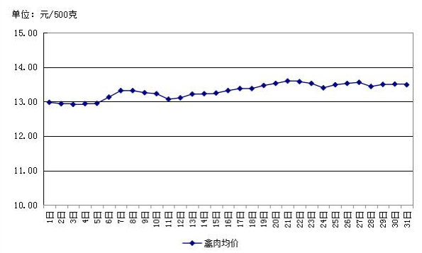 据海南省价格监测中心统计,本周禽肉价格环比略降,禽肉均价为13.23元/500克。普通鸡肉环比-0.93%。8月份,海南省禽肉类零售价格呈波动上涨走势,零售均价为13.31元/500克,同比下降10.97%。