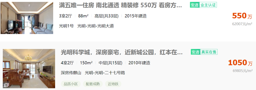 以电建·洺悦府为例,该项目备案均价约为59700/平,区位不仅有光明科学城建设的利好,价格也比周边二手房低不少。周边的二手房,比如光明1号,均价约为6.2万元/㎡,深房传麟山均价则要6.98万元/㎡。