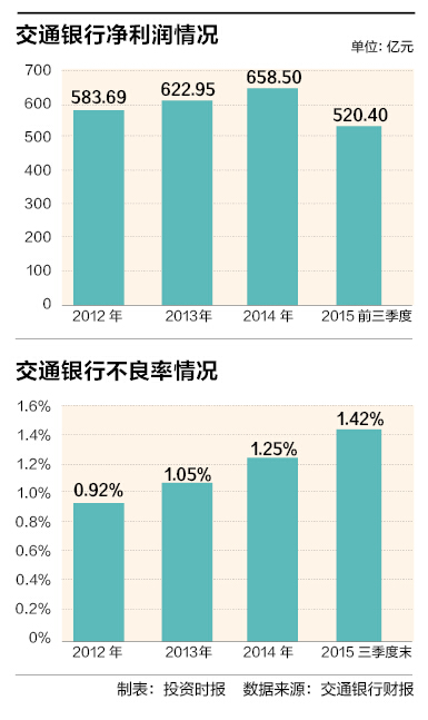 数据显示,交通银行2015年前三季度不良率为1.42%,较上季度上升了0.07个百分点,较上年末上升0.17个百分点。不良贷款余额为528.75亿元,较上年末增加98.58亿元。拨备覆盖率为165.33%,较上年末下降13.55个百分点。