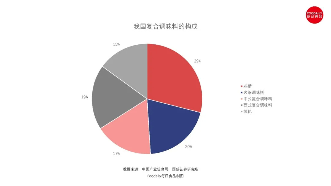 广义上的复合调味料是相对于单一调味料(酱油、醋、盐等基础调味料)而言,用两种或两种以上的调味品经过特殊加工而制成的调味料。按照品类,通常可以分为鸡精、火锅调料、中式复合调味料、西式复合调味料以及其他。