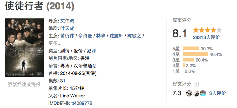 TVB的电视剧《使徒行者》2014年播出时着实火了一把,不仅在豆瓣上评分高达8.1分,在视频网站播出时,也以超8亿的播放量,打破了TVB剧集在内地视频网站播放量的最高历史纪录。大结局当日网络播放量更超1亿,居当时的内地网络播放量首位。