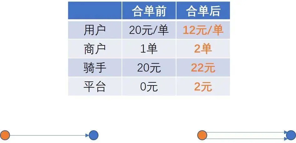 我们会发现,经过这样调度之后,配送员提升了一倍的效率;而与原来单个订单相比,配送员跑的路程不变,但各方都获得了更多利益: