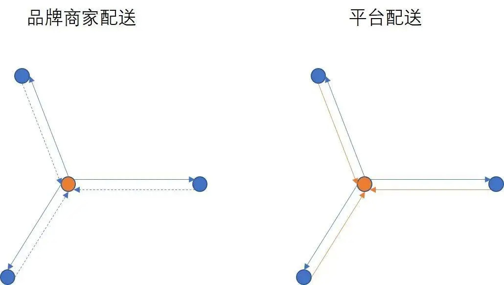 我们曾经聊过这个话题,事实上,品牌商家的自配送模式有一个天然的缺陷,那就是返程是空载的,配送员的负载率上限就只有50%。