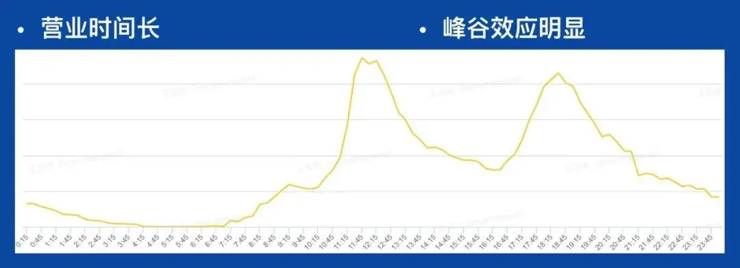 骑手的配送时间如此紧绷,究其根本,源自外卖需求的峰谷效应,即我们之前聊过的:外卖需求真正的高峰,只是在中午和傍晚各两个小时的时间里。