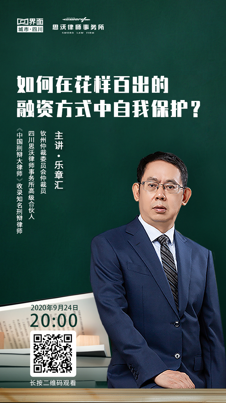 9月24日晚8点,四川思沃律师事务所高级合伙人乐章汇律师做客界面四川《见川云课堂》,教大家举起法律知识保护自己。