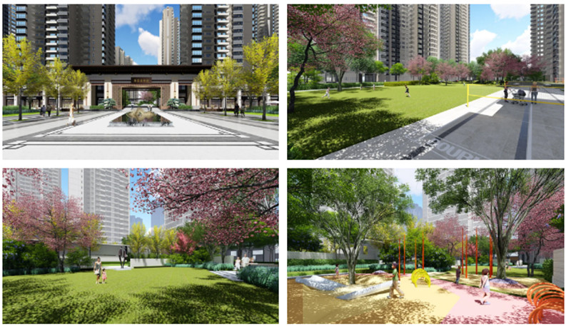 在约2.4万㎡园林景观中,点缀园景泳池、活力球场、彩虹跑道等全龄园区生活配套。