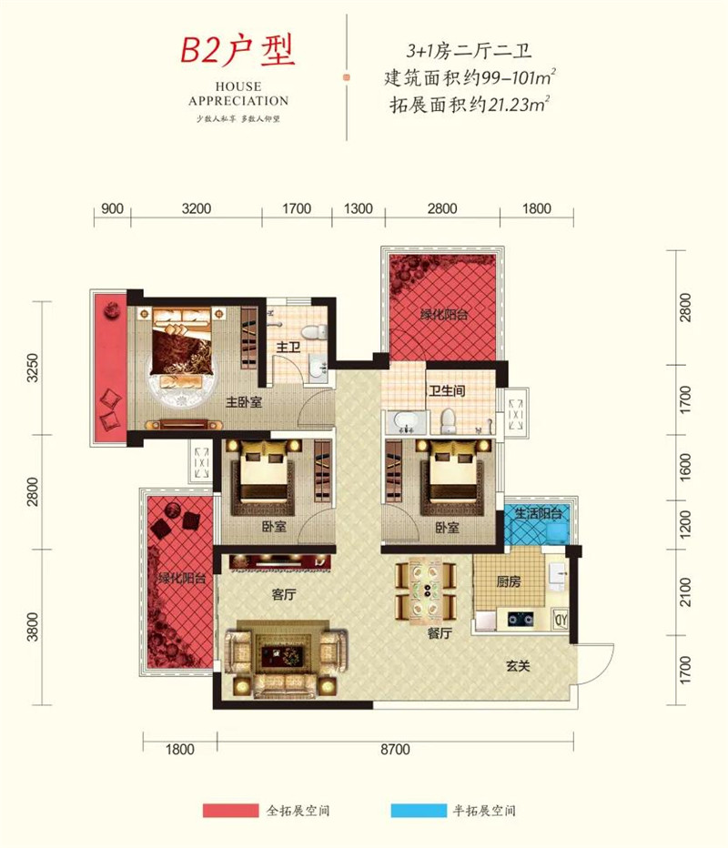海蓝金钟府精研人居需求,高拓展,户户多得一间房,格局方正,动线合理,充足采光,呵护每个家庭的人居梦想。