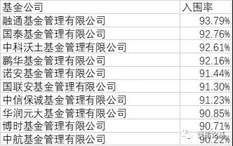 从公司的维度,我们也能统计出每家公司的入围率,市场上也陆续有一些投资者统计此类数据来考量打新管理人。公募基金入围率排名前十的公司如下: