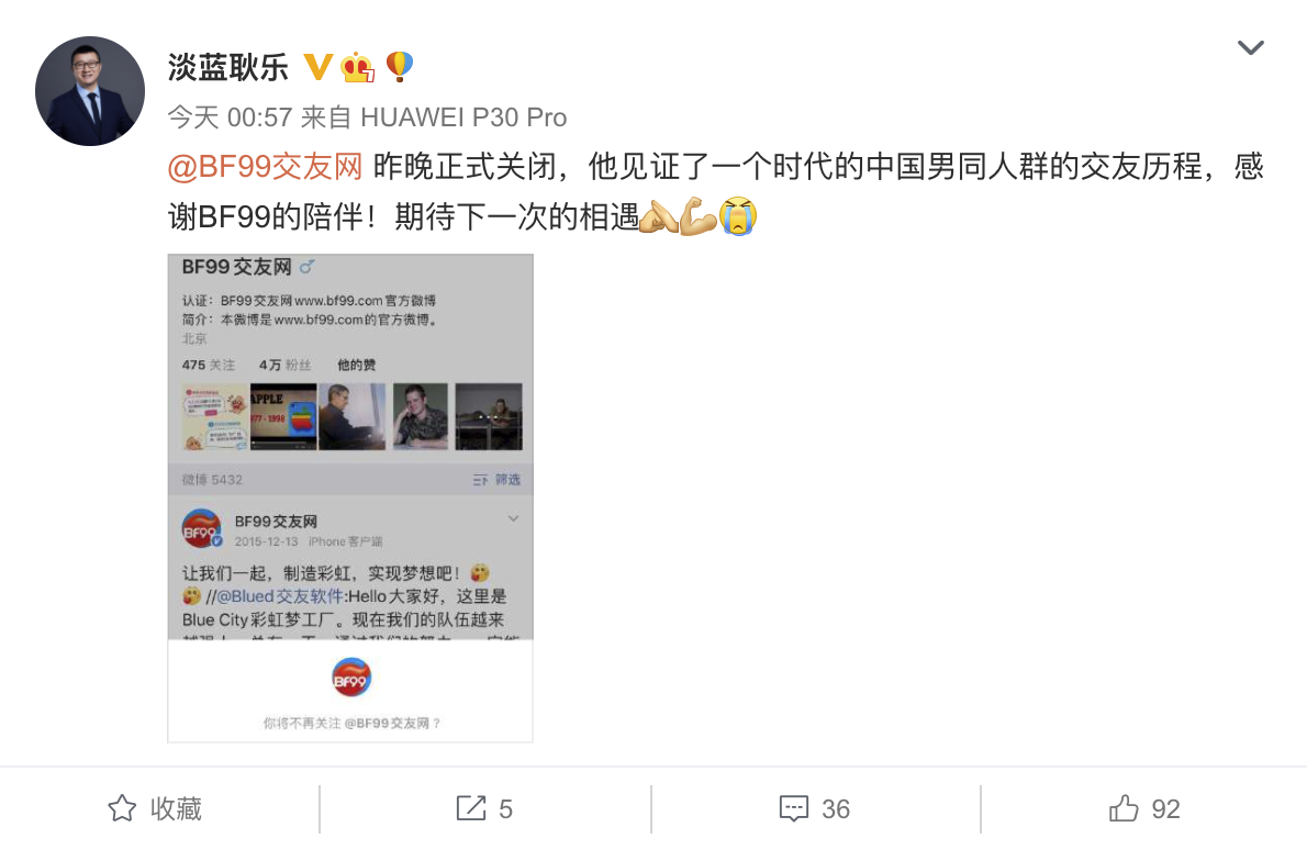 9月24日凌晨,淡蓝公益创始人、蓝城兄弟CEO耿乐在其个人微博宣布BF99交友网昨晚正式关闭。