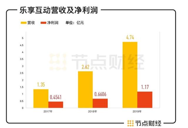 根据招股书显示,2017年-2019年,乐享互动营收分别为1.35亿元、2.62亿元以及4.74亿元,毛利分别为4541万元、6606万元和1.17亿元。